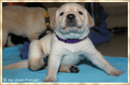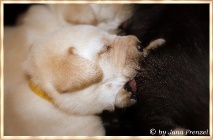 an den Ohren schlabbern. Gestern gab es auch endlich den ersten Babybrei.......
